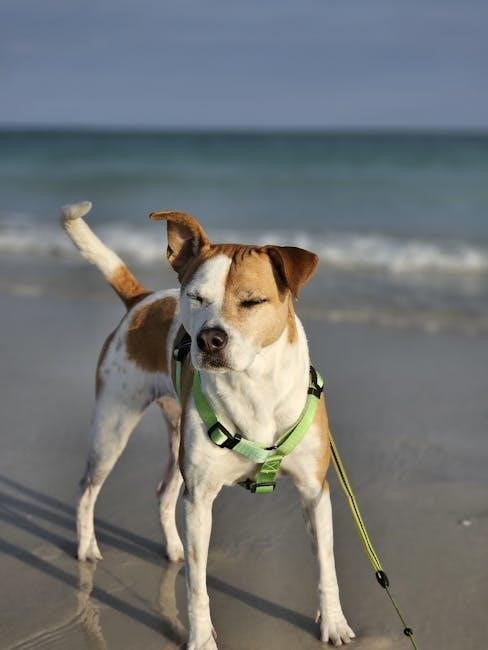 Once your dog is comfortable with basic leash skills, introduce advanced techniques like the “look” or “watch me” command to maintain focus. Practice walking in varied environments with distractions, rewarding calm behavior. Incorporate loose-leash walking drills, such as figure-eights and sudden stops, to refine responsiveness; Gradually increase walk duration and intensity, ensuring your dog remains composed. Use treats and praise to reinforce good behavior, and avoid jerking the leash, which can undo progress. Consistency and patience are crucial for mastering these techniques.