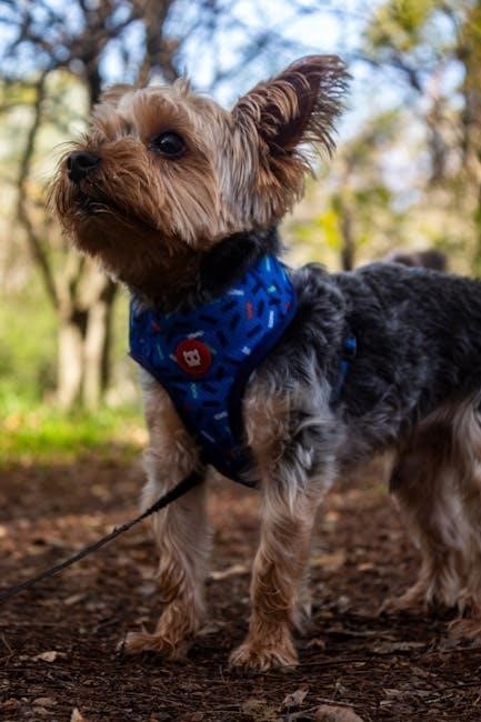 Begin by familiarizing your dog with the Easy Walk Harness in a controlled environment. Let them explore and accept it at their own pace. Start with short training sessions, using treats and praise to build positive associations. Practice basic commands like “sit” and “heel” while wearing the harness. Gradually introduce the leash, focusing on loose-leash walking by rewarding calm behavior. Avoid pulling back on the leash, as this can create resistance. Consistency and patience are key to establishing a strong foundation for effective leash training.