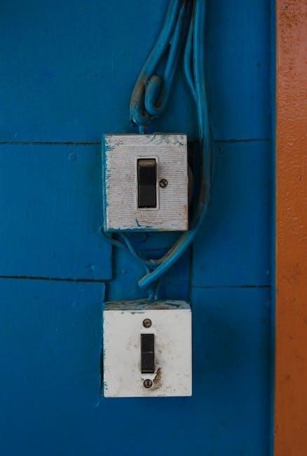 Two traveler wires (often red and another color) connect the two switches, enabling the toggling action. Crucially, the neutral wires are connected together in the light fixture box and back to the power source. The ground wires must also be connected in each box for safety. PDF diagrams emphasize identifying the common terminal on each switch – it’s usually a different color screw. Incorrect wiring can lead to the switch not functioning correctly or even creating a safety hazard, so careful adherence to the diagram is paramount. Always verify wire colors and connections before energizing the circuit.